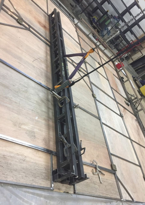 Platform elements for a large wall that tilts into a walkable platform for a production of Hannah and the Dread Gazebo at the Oregon Shakespeare Festival (OSF)